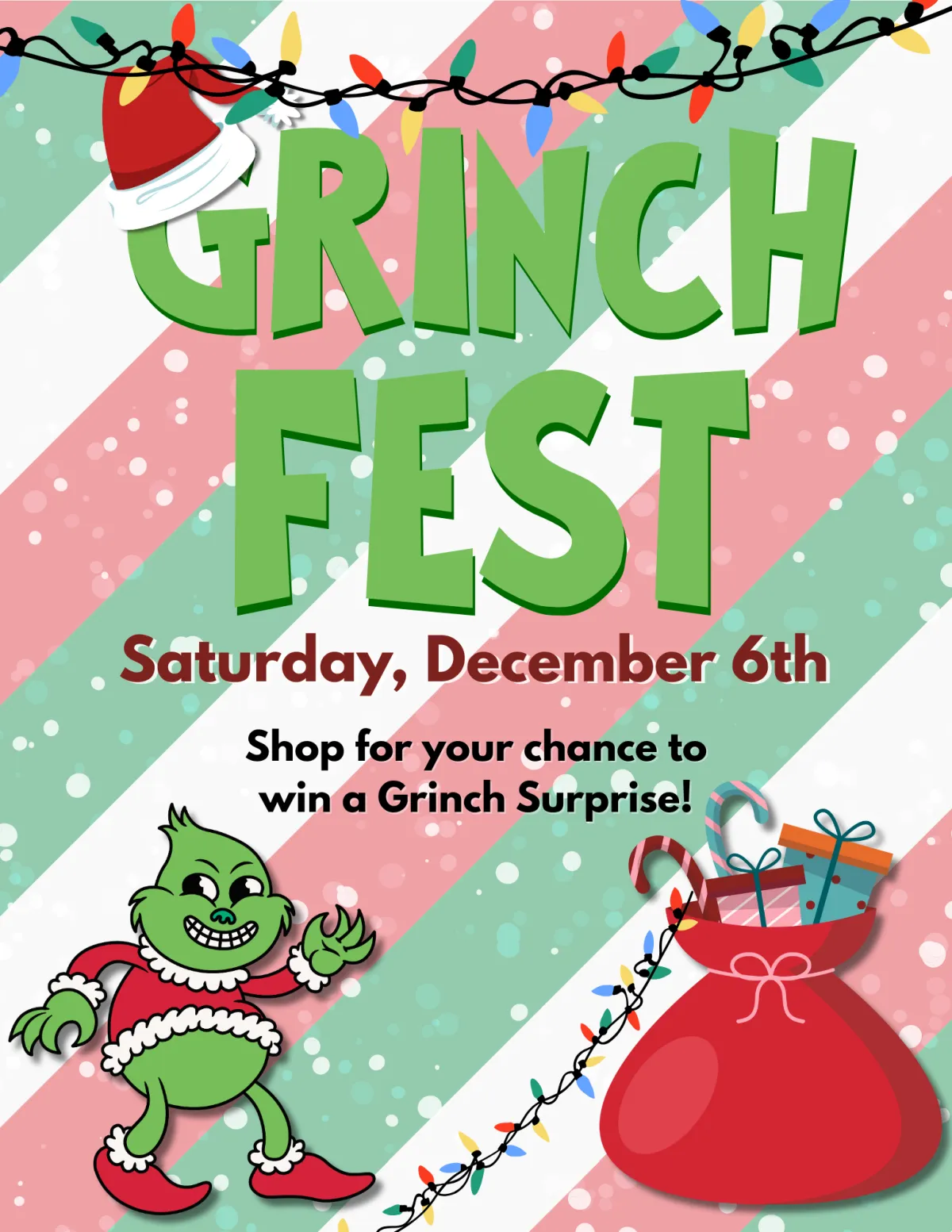 Join us December 6th for Grinch Fest! Shop with us and maybe win a Grincy surprise!