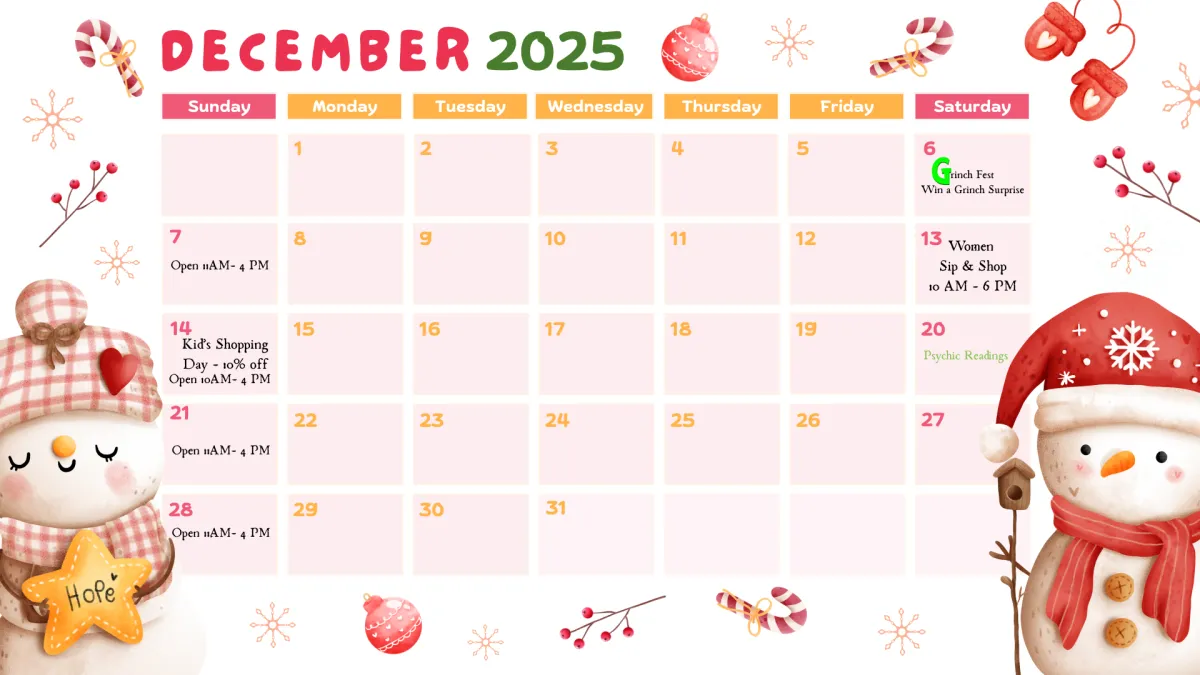 December Only Open Sundays 11AM - 4PMDecember Only Open Sundays 11AM - 4PM.December Only Open Sundays 11AM - 4PM.